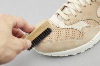 - 5. lépés – Használjon tisztítószert a foltok és szennyeződések tisztításához a gumi talpából, a talpcipőből vagy a cipő gumiszerű felső részéből.